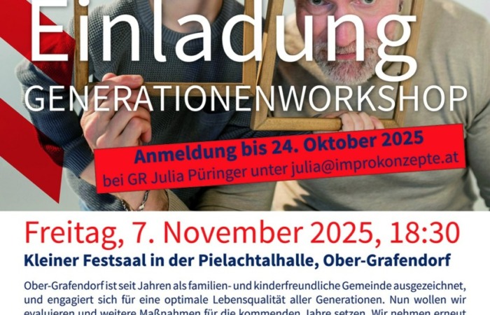 Die Marktgemeinde Ober-Grafendorf lädt alle Bürger:innen herzlich ein, ihre Gedanken und Ideen für ein lebens- und liebenswertes Ober-Grafendorf einzubringen. Ziel ist es, die Gemeinde so… Mehr >