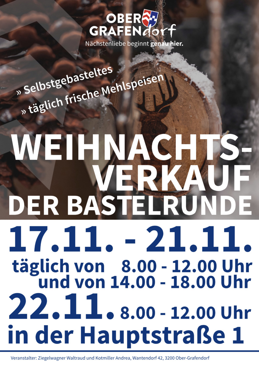 Von 17. bis 21. November 2025 findet der traditionelle Weihnachtsverkauf der Bastelrunde statt.