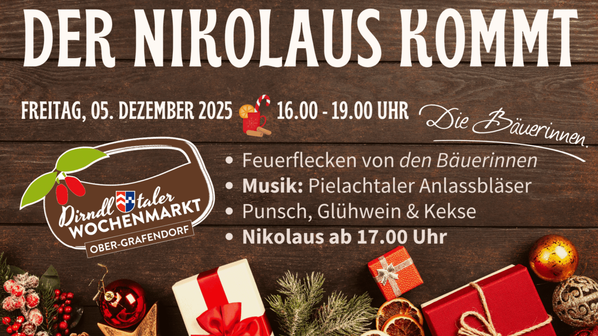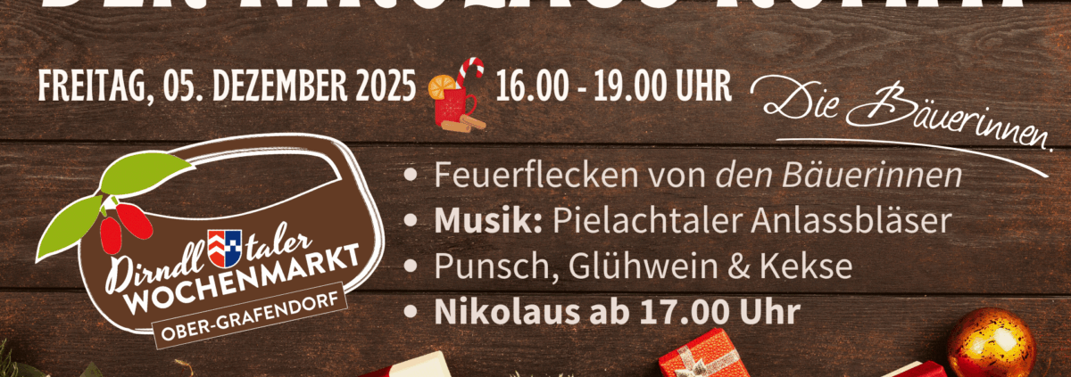 Nikolausbesuch am Dirndltaler Wochenmarkt Freitag, 05.12.2025