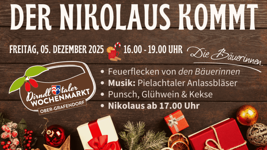 Die Marktgemeinde Ober-Grafendorf lädt herzlich zum Nikolausbesuch am Freitag, 05. Dezember 2025, von 16.00 bis 19.00 Uhr, ein.